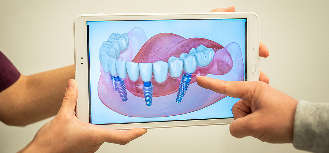 Zahnimplantate sind bestens geeignet bei Einzelzahnverlust, aber selbst ein ausgeprägter Zahnverlust bis hin zur vollkommenen Zahnlosigkeit kann dank der Zahnimplantologie der Vergangenheit angehören.